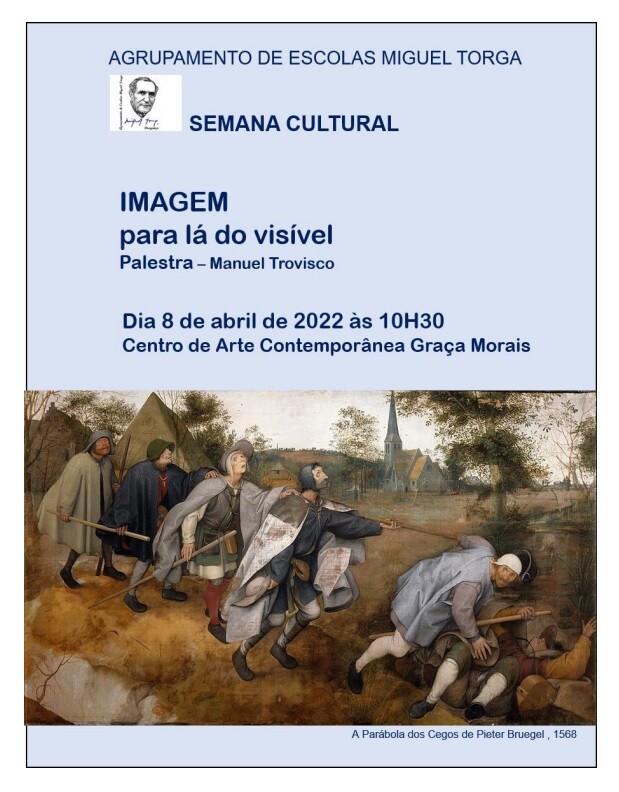 Palestra "Imagem - para lá do visível", pelo professor Manuel Trovisco: 8 de abril, às 10:30 h, no Centro de Arte Contemporânea Graça Morais (turmas de secundário - cf. Plano afixado). #semanacultural2022AEMT