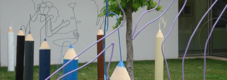 Instalados temporariamente no Jardim deste Centro de Arte Contemporânea, cada lápis de cor projecta no espaço, em tema inteiramente livre, um desenho monolinear.